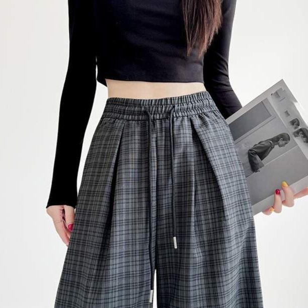 ガウチョ特有の優雅な広がりに、格子柄のモダンなデザインが加わることで、トレンド感のあるスタイリングが楽しめます。
