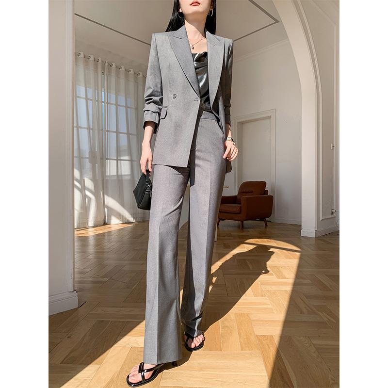 洗練されたシルエットのテーパードパンツ。裾に向かってやや広がるデザインが、脚を美しく見せる効果を持つ。上質な素材感が魅力のグレーパンツは、ベストやジャケットと組み合わせることで、スタイリッシュなセットアップスタイルが完成。職場からカジュアルなお出かけまで、多様なシーンで活躍する一着。シンプルながらも洗練された印象を演出するアイテムです。