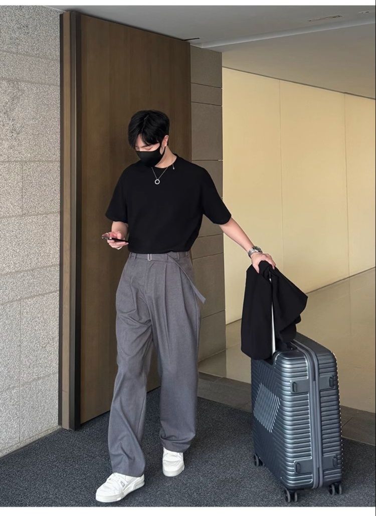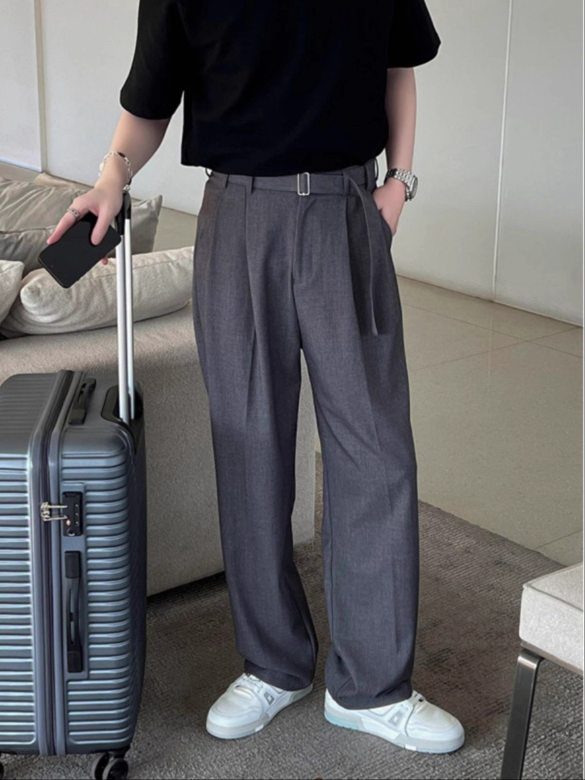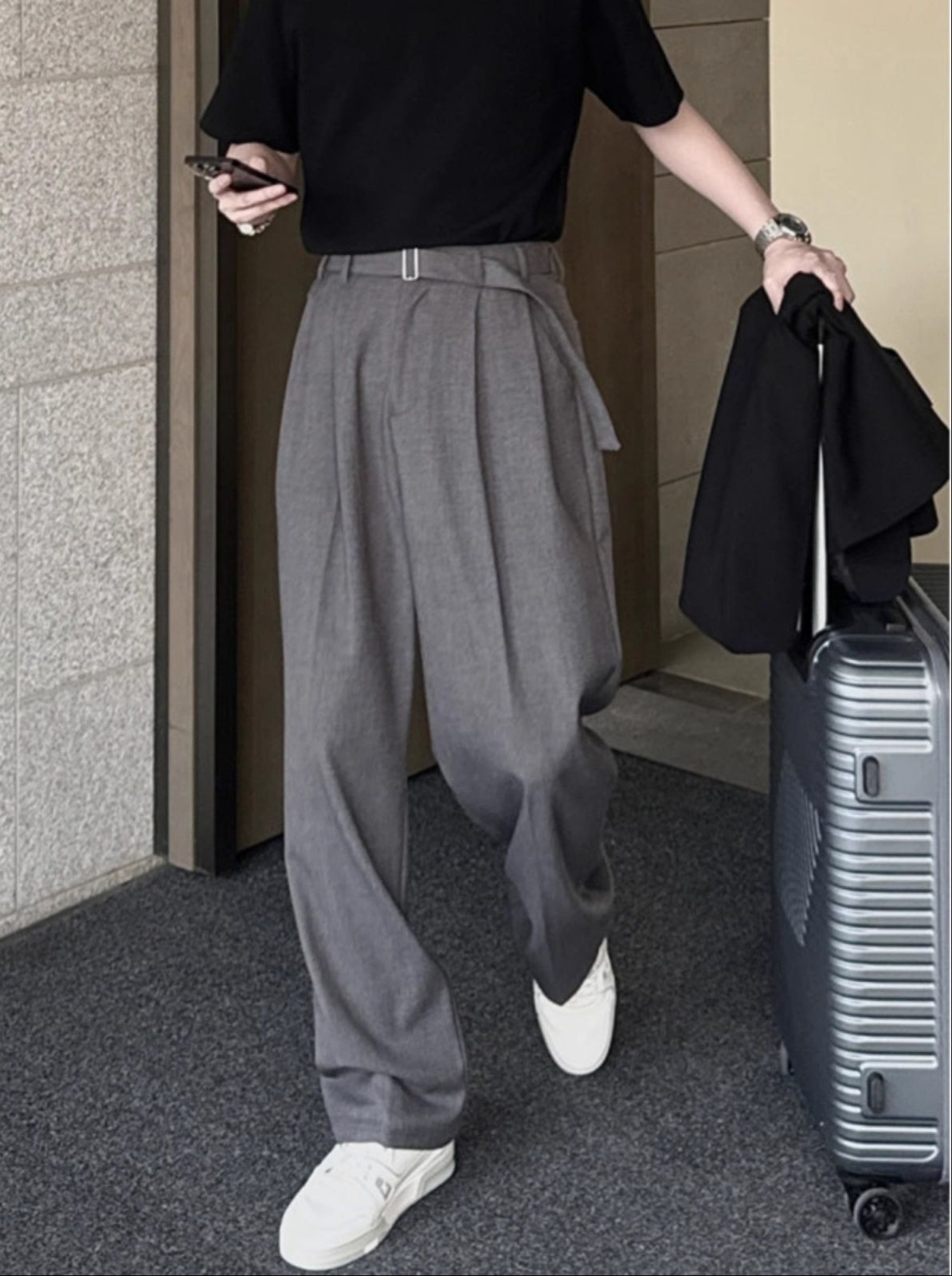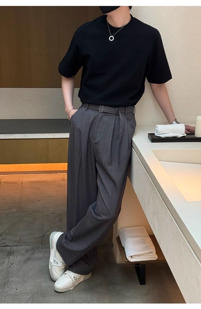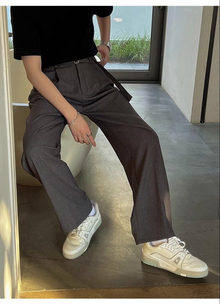 洗練された都会的なスタイルを演出するグレー パンツのワイドシルエットスラックスです。
