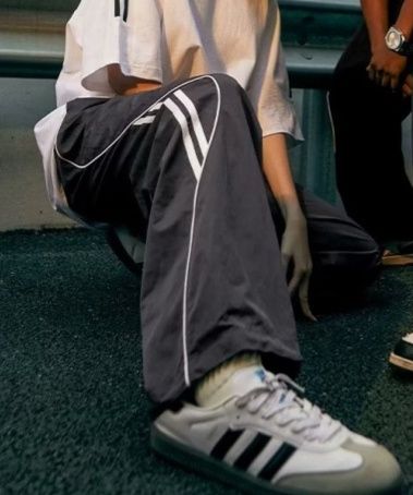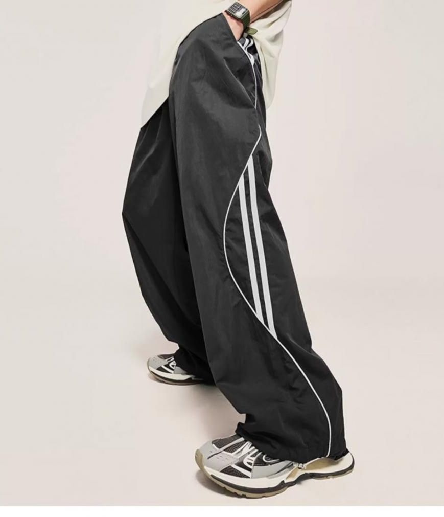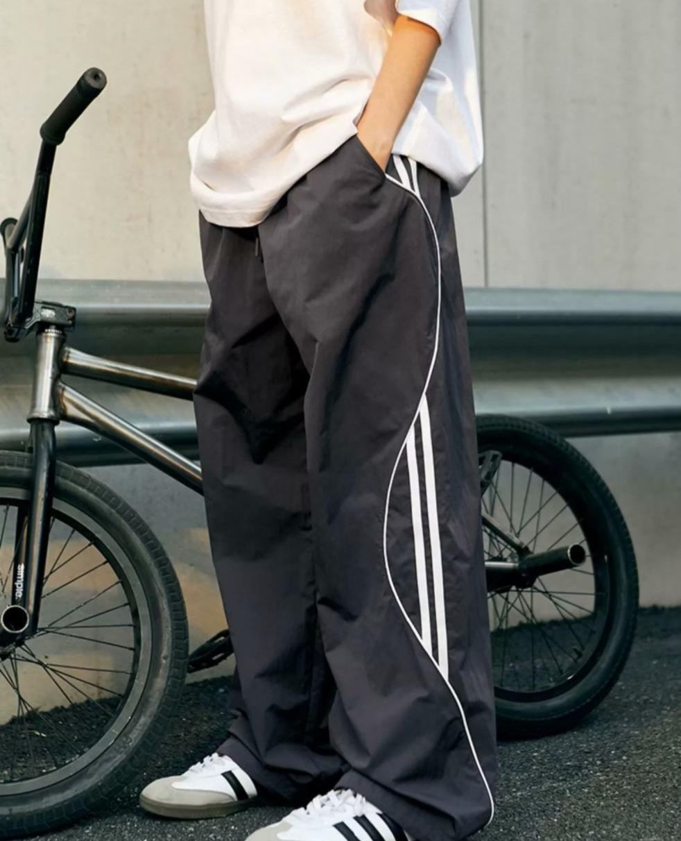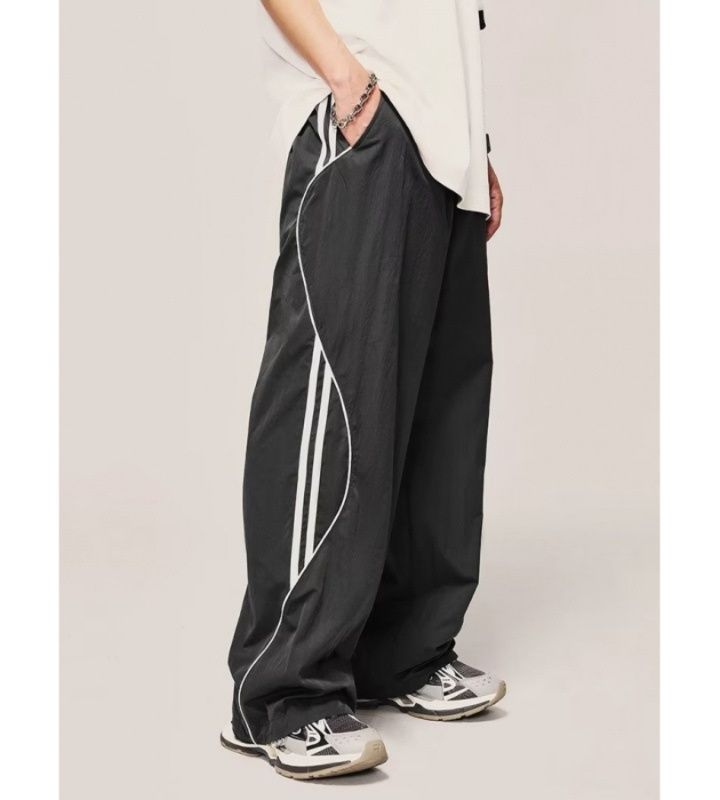 サイドに施された白いラインがアクセントになったワイドパンツです。